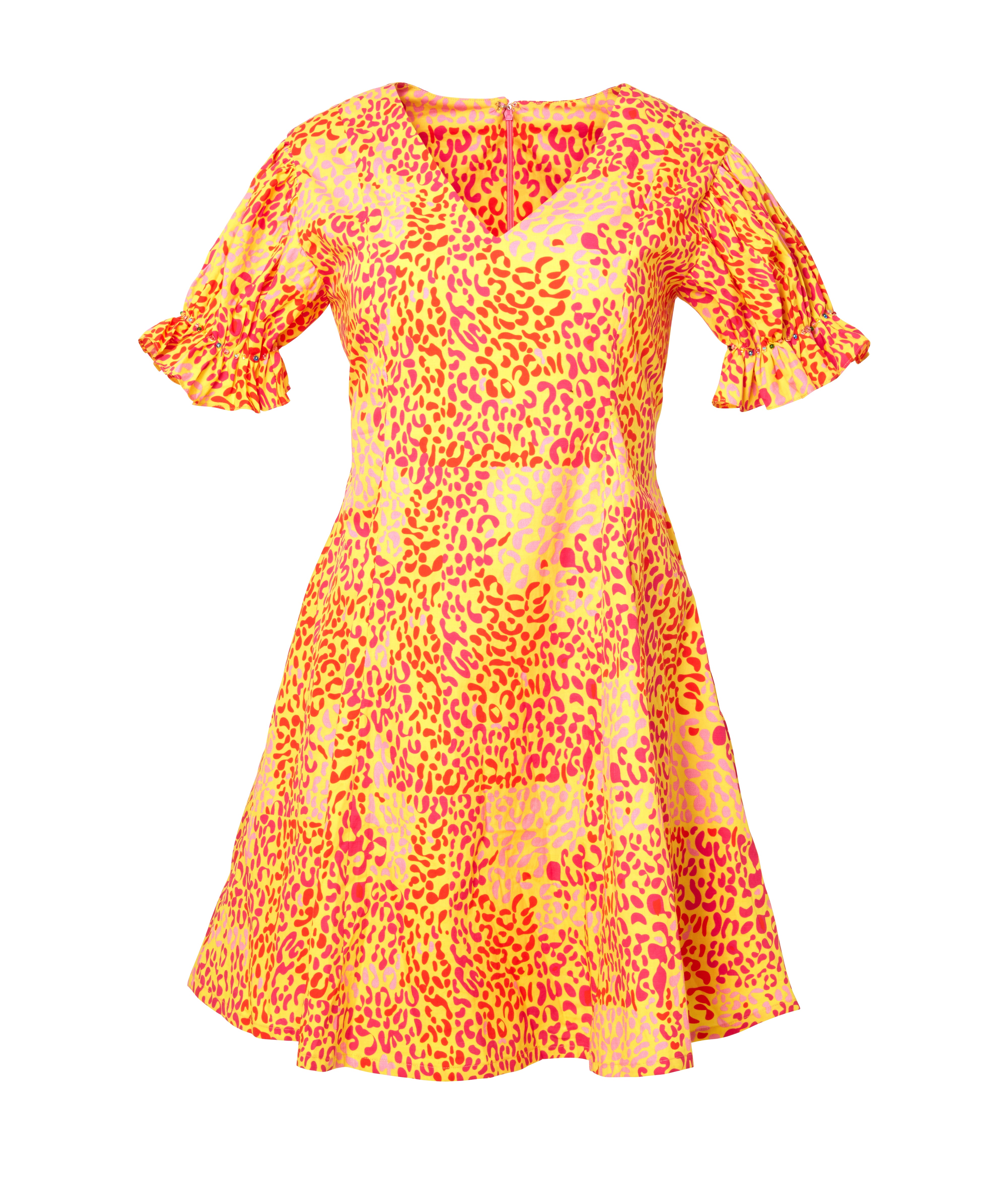 - Mini Dress with Tiered Hem and Tie Up Sleeves
