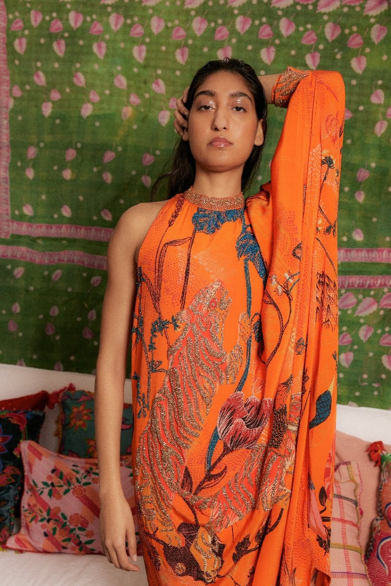 Elegantly bohemian, the Madeline Metallic Silk Kaftan Dress flows in the wind and with its relaxed silhouette and luminous stripe print. The handcrafted midi dress is gracefully finished a tasseled tie-up closure.