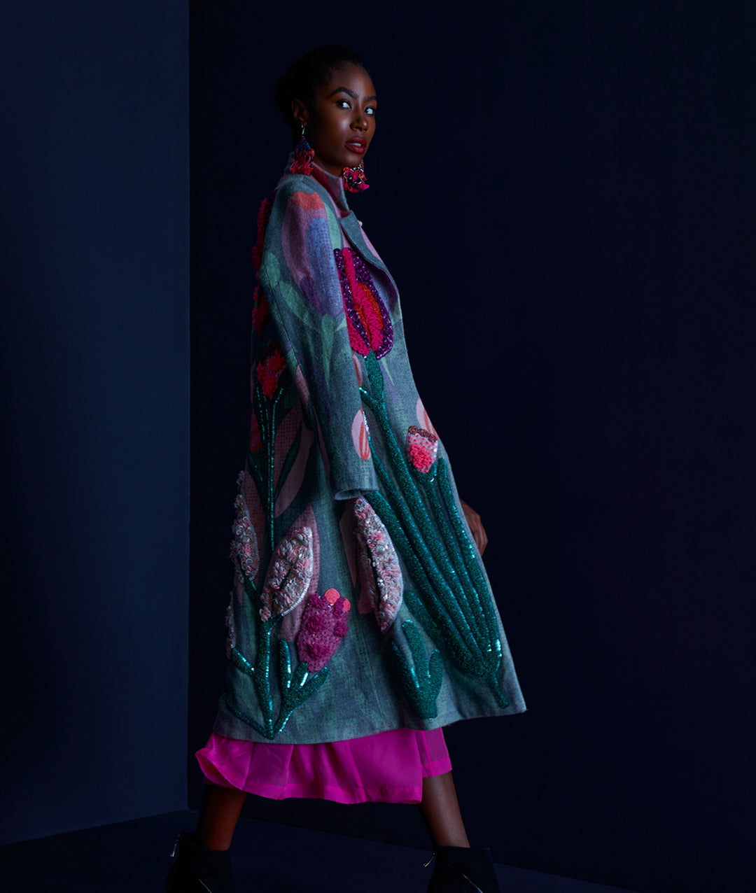 Our outerwear is the perfect middle ground blending modern and traditional to create a garment that are certain to keep the onlooker’s gaze fixed on you. Some of the most aesthetically pleasing crafted handiwork, our coats and jackets are meant to compliment any body, and you deserve no less. Check out our selection to order your next piece of outerwear from Roopa Pemmaraju today!
