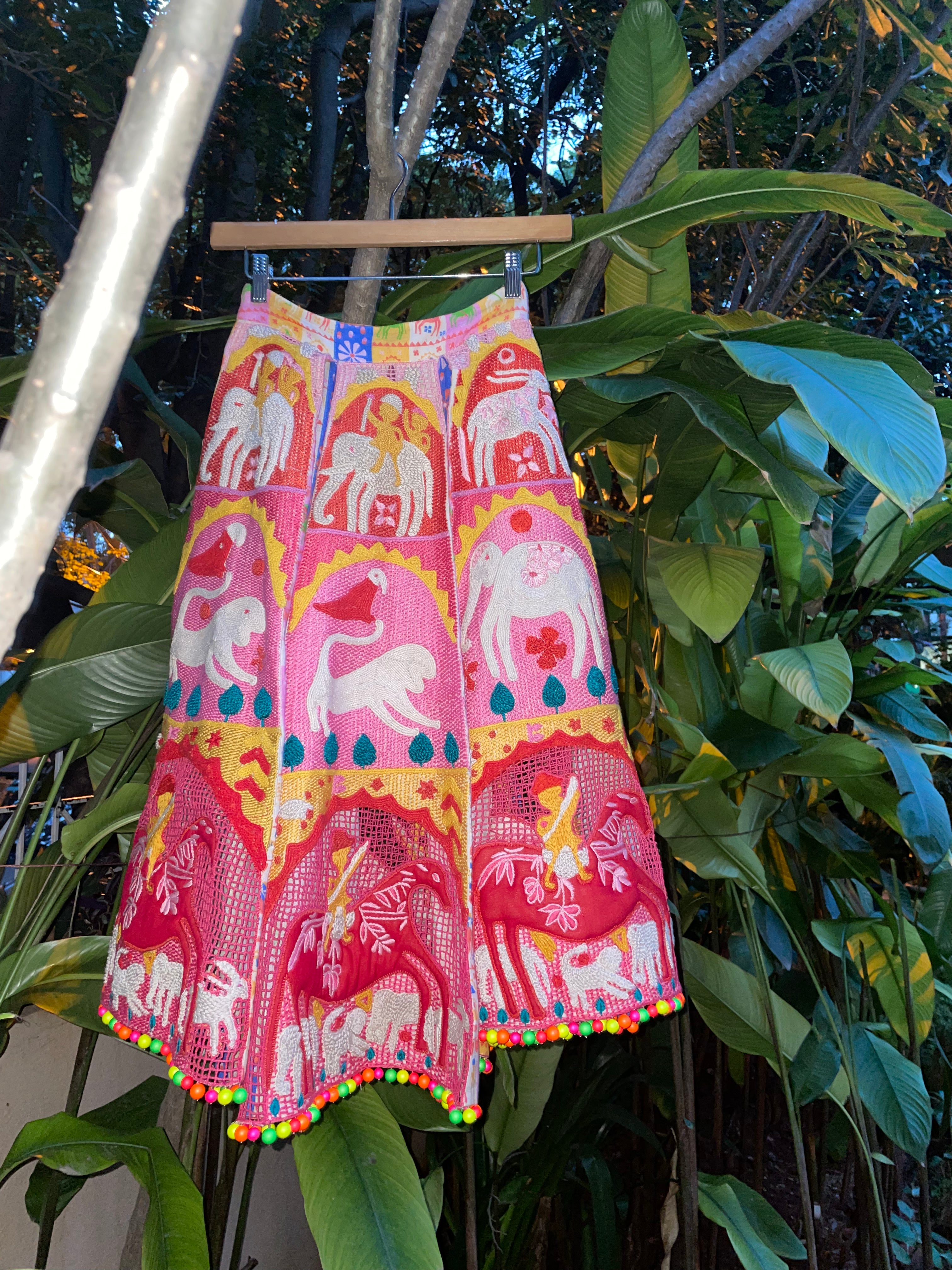 The Marigold Tassel Headband looks striking with its tropical hues of orange, yellow, and pink. The vibrant, bohemian headband is sustainably handmade with silk tassels and handwoven cotton silk flowers and is finished with Swarovski crystals and beads for a touch of sparkle.