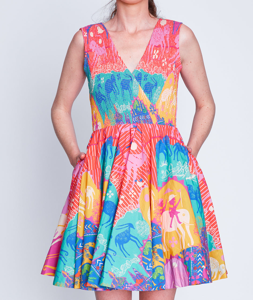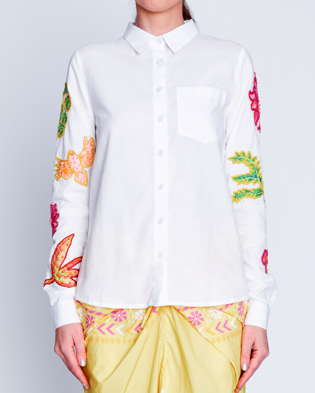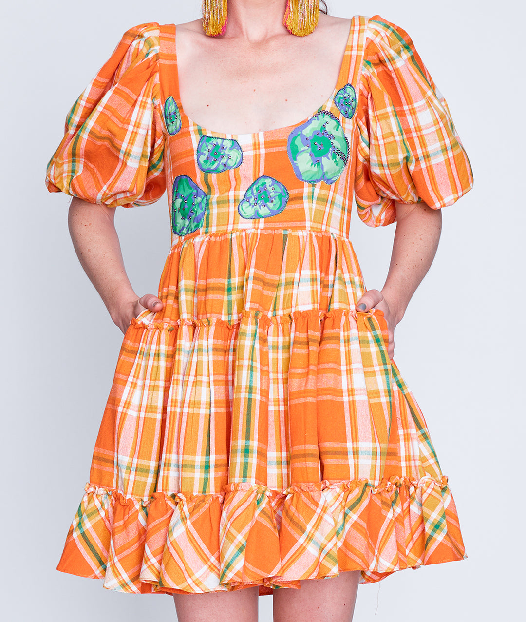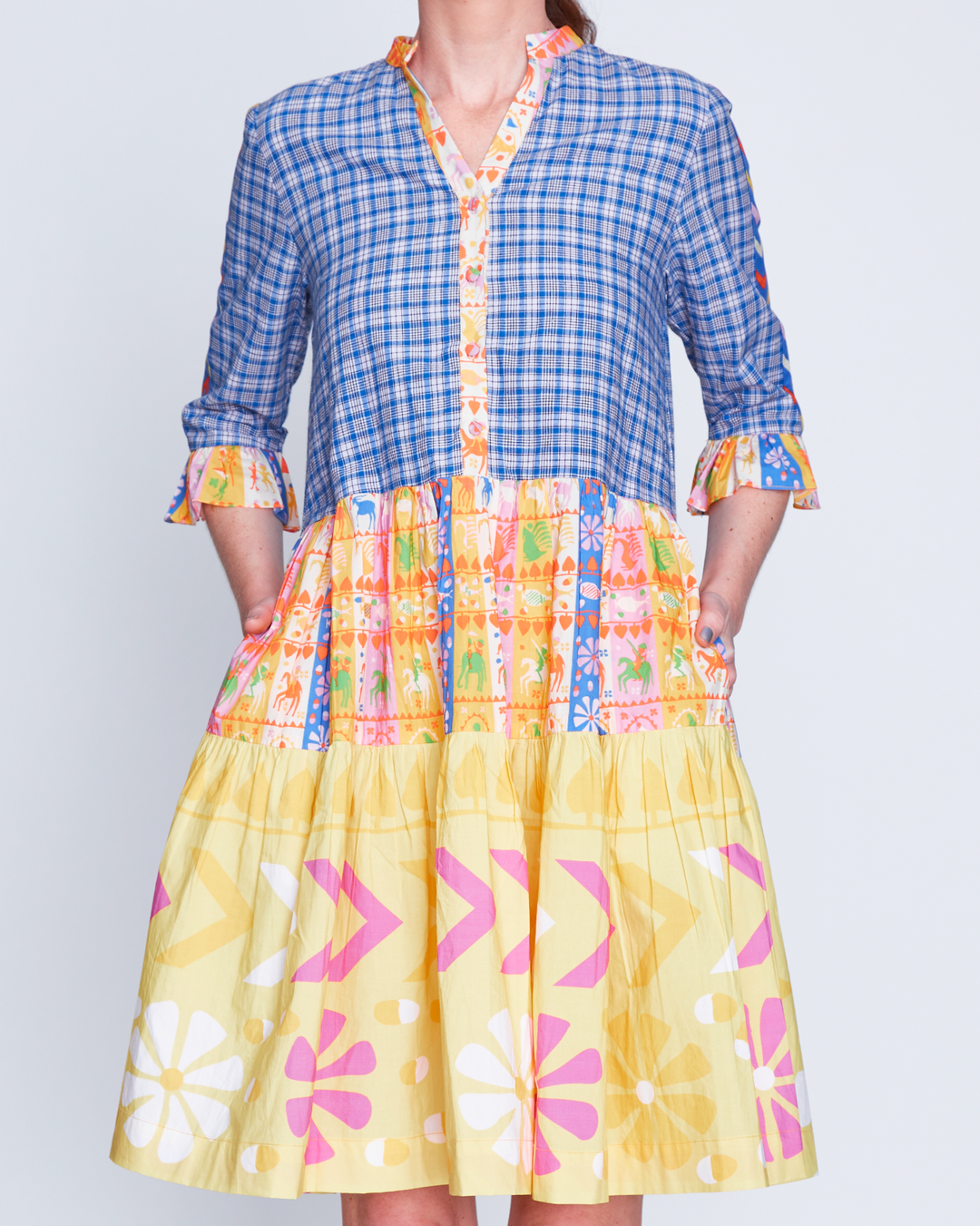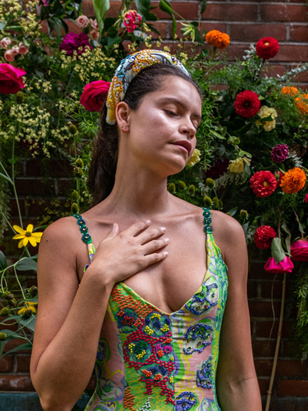 Step into a colorful, enchanting garden with the sustainably crafted Suncatcher Collection. This fully hand-woven collection is a multicultural harmony of exquisite florals, vibrant plaids and magical folk prints inspired by British gardens in India. Explore the garments as they glisten in the light like colorful suncatchers with hand-embellished Swarovski crystals.